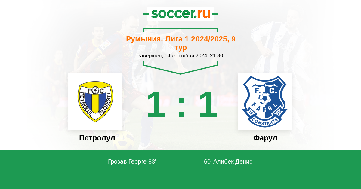 83' (1:1) Грозав Георге (7)