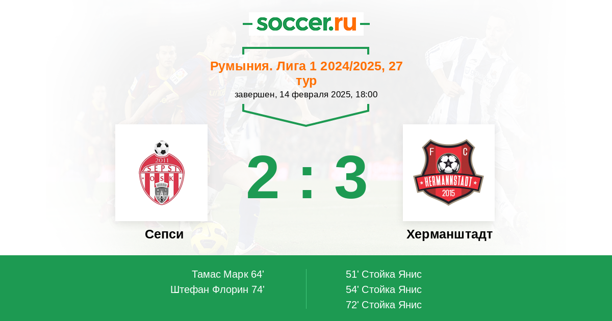 64' (1:2) Тамас Марк (44) (Коман Мариус (9))