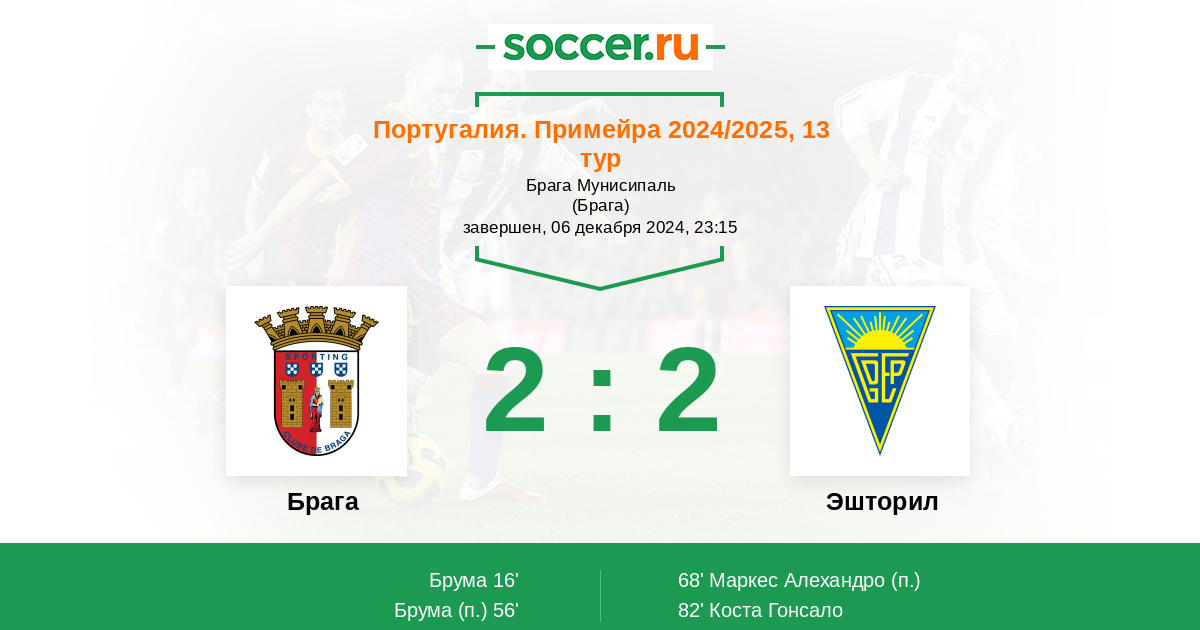 16' (1:0) Брума (7) (Фернандеш Рожер (11))