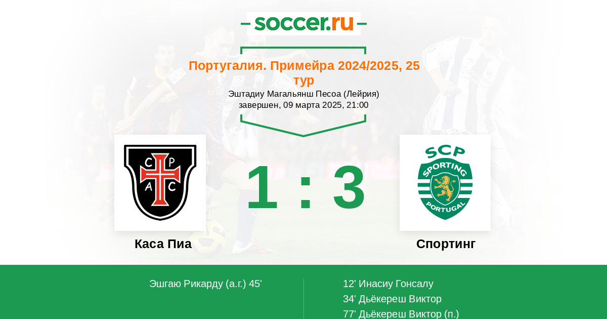 45' (1:2) Автогол Эшгаю Рикарду (47)