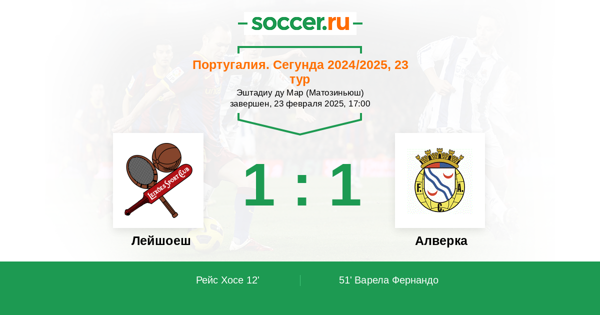 51' (1:1) Варела Фернандо (5) (Агеу (40))