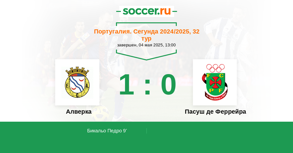 9' (1:0) Бикальо Педро (35) (Картер Энтони (9))