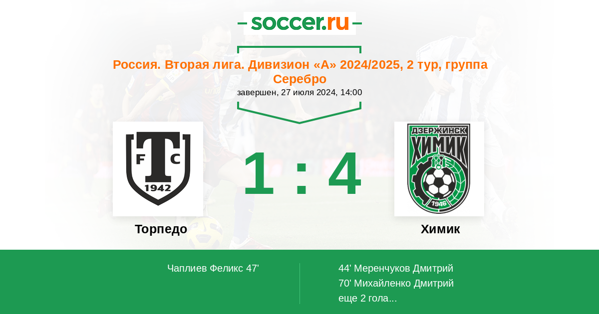 44' (0:1) Меренчуков Дмитрий (10)