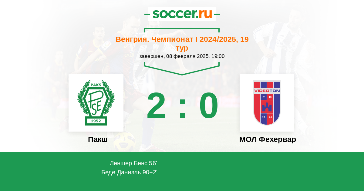 90+2' (2:0) Беде Даниэль (13) (Мезей Жаболкс (26))