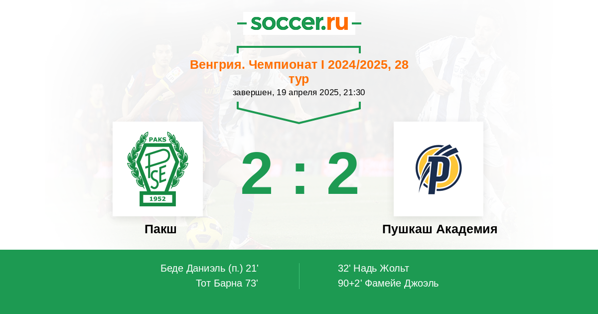 73' (2:1) Тот Барна (29) (Отвош Бенс (23))