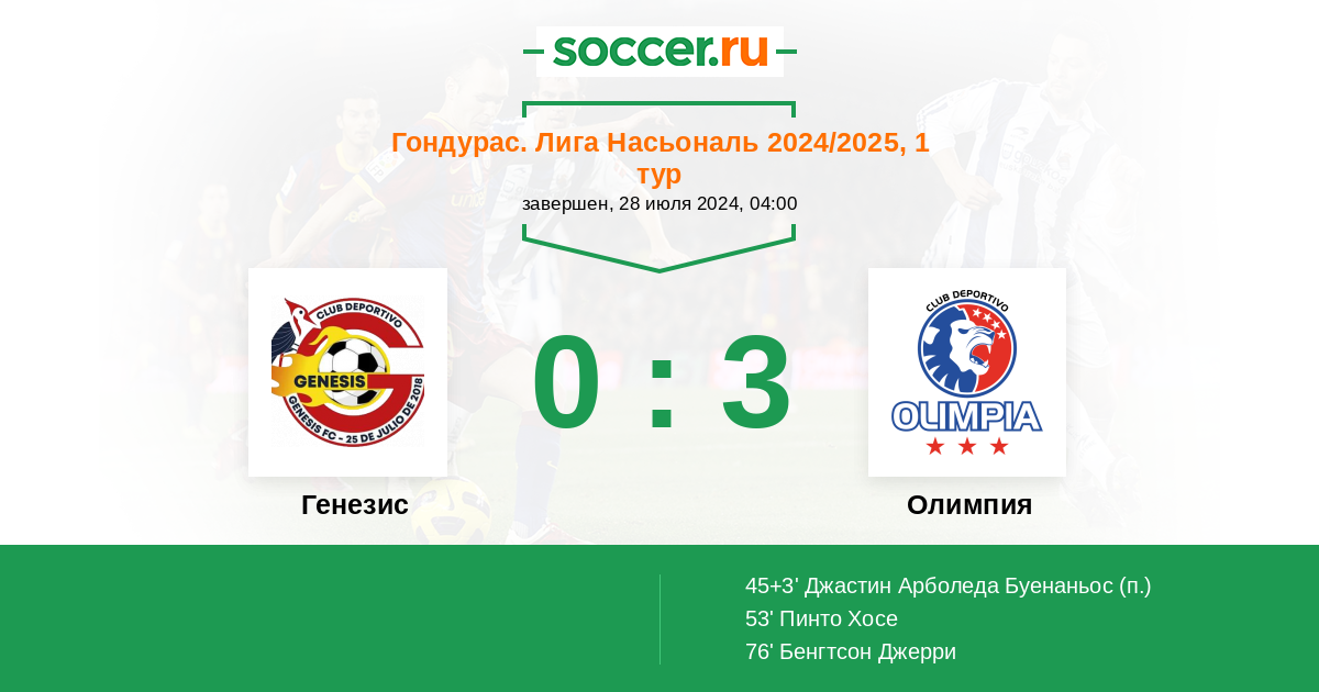 45+3' (0:1) Джастин Арболеда Буенаньос
