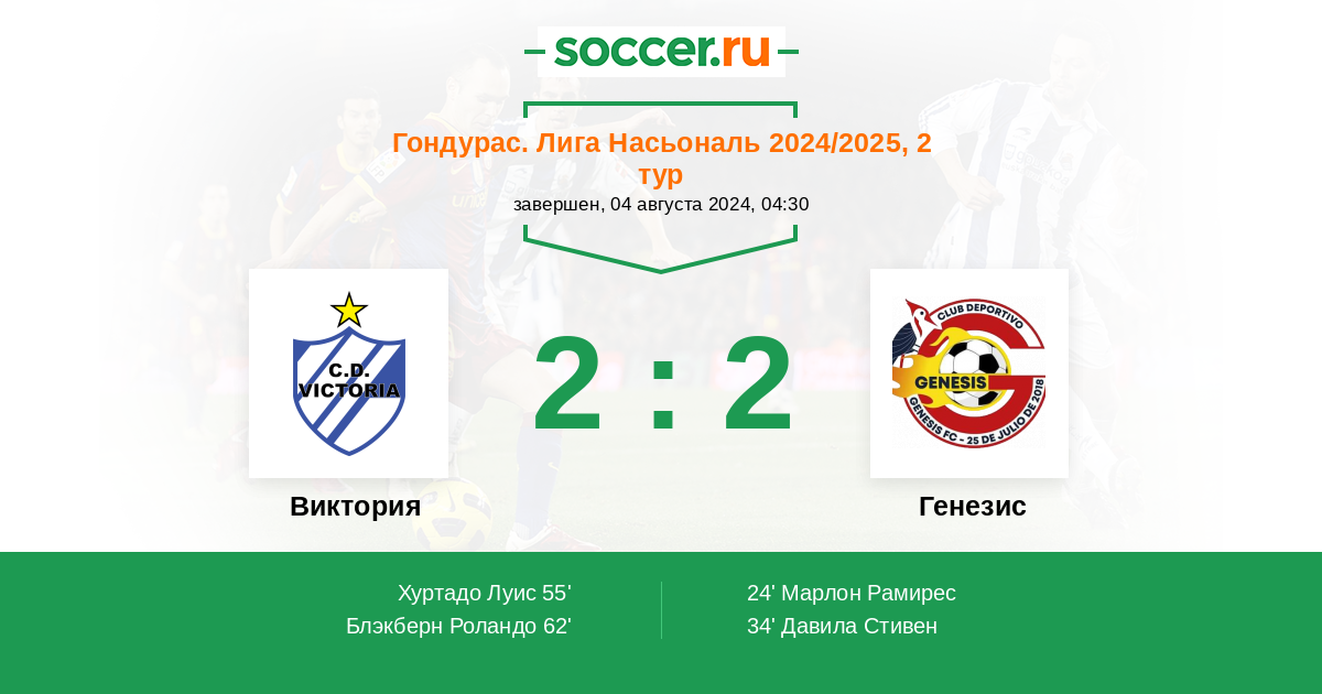 24' (0:1) Марлон Рамирес