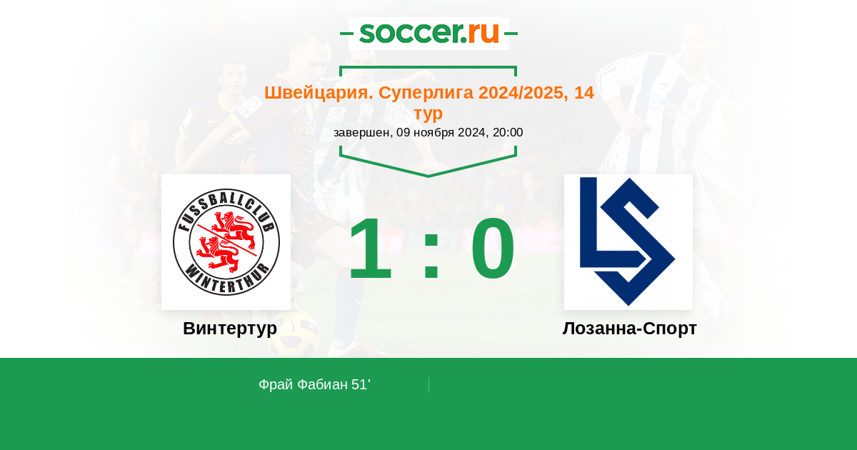 51' (1:0) Фрай Фабиан (11) (Лукембила Жозиас (90))