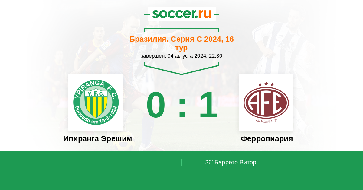 26' (0:1) Баррето Витор (11)