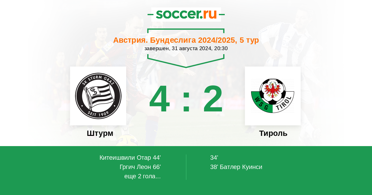 66' (2:2) Гргич Леон (38) (Китеишвили Отар (10))