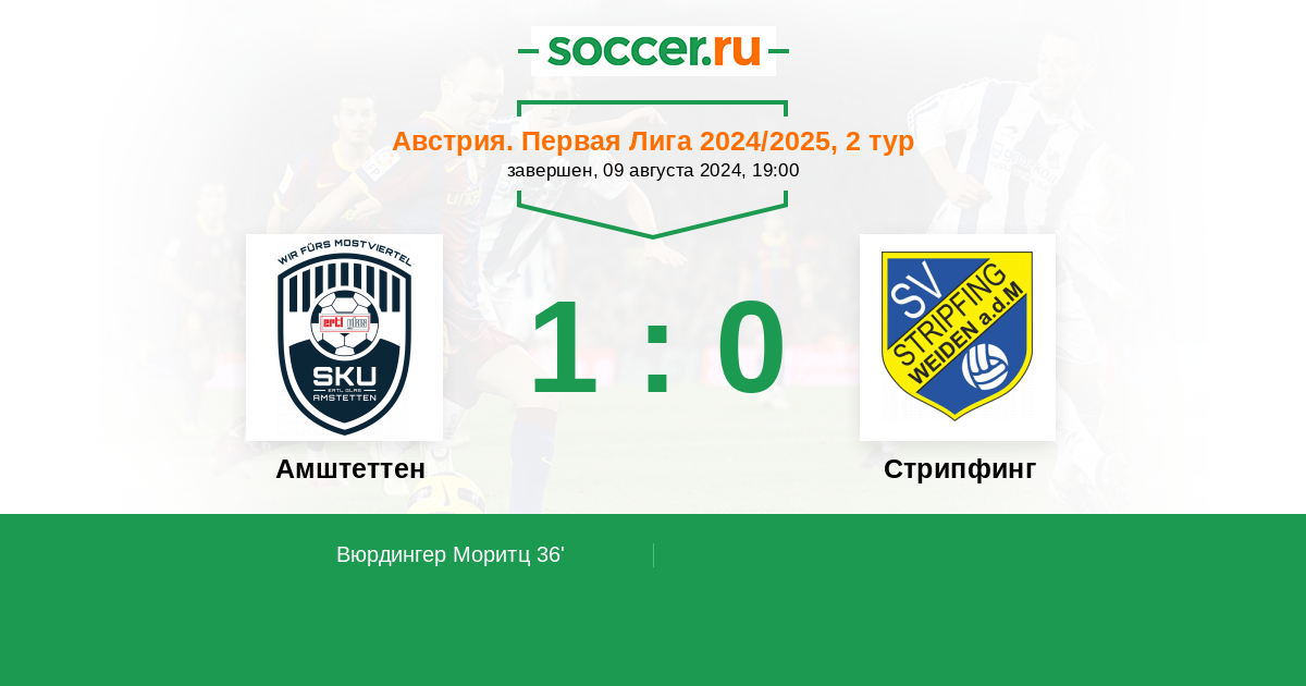 36' (1:0) Вюрдингер Моритц (17)