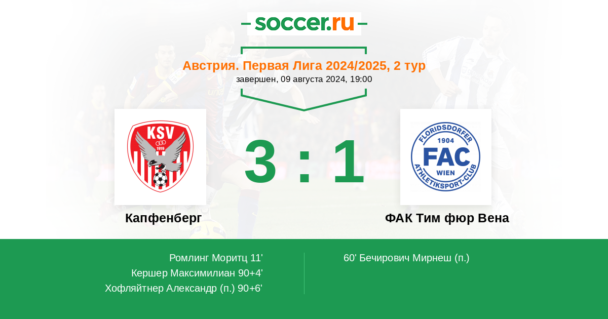 Запасные: 16 Маринович Адриан (с 56'), 7 Хеллепарт Марк (с 63'), 8 Пушль Маттиас (с 74'), 80 Кершер Максимилиан (с 74'), 36 Пунтигам Давид, 37 Хофер Максимилиан, 28 Микулич Нико