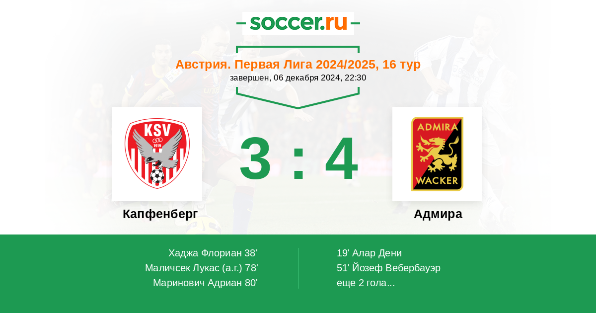 38' (1:1) Хаджа Флориан (32) (Пушль Маттиас (8))