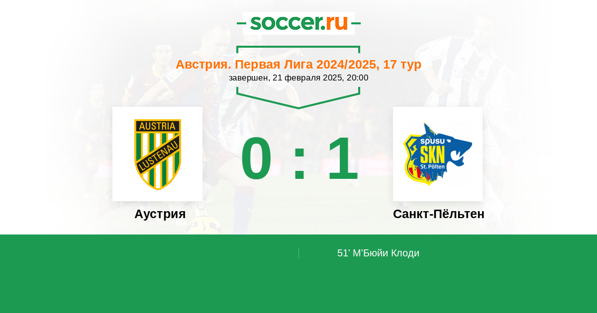 51' (0:1) М'Бюйи Клоди (71) (Мессерер Кристоф (8))
