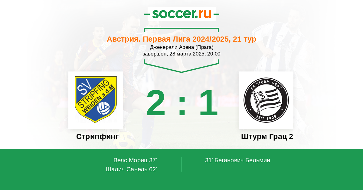 37' (1:1) Велс Мориц (37) (Крейкер Дарио (47))