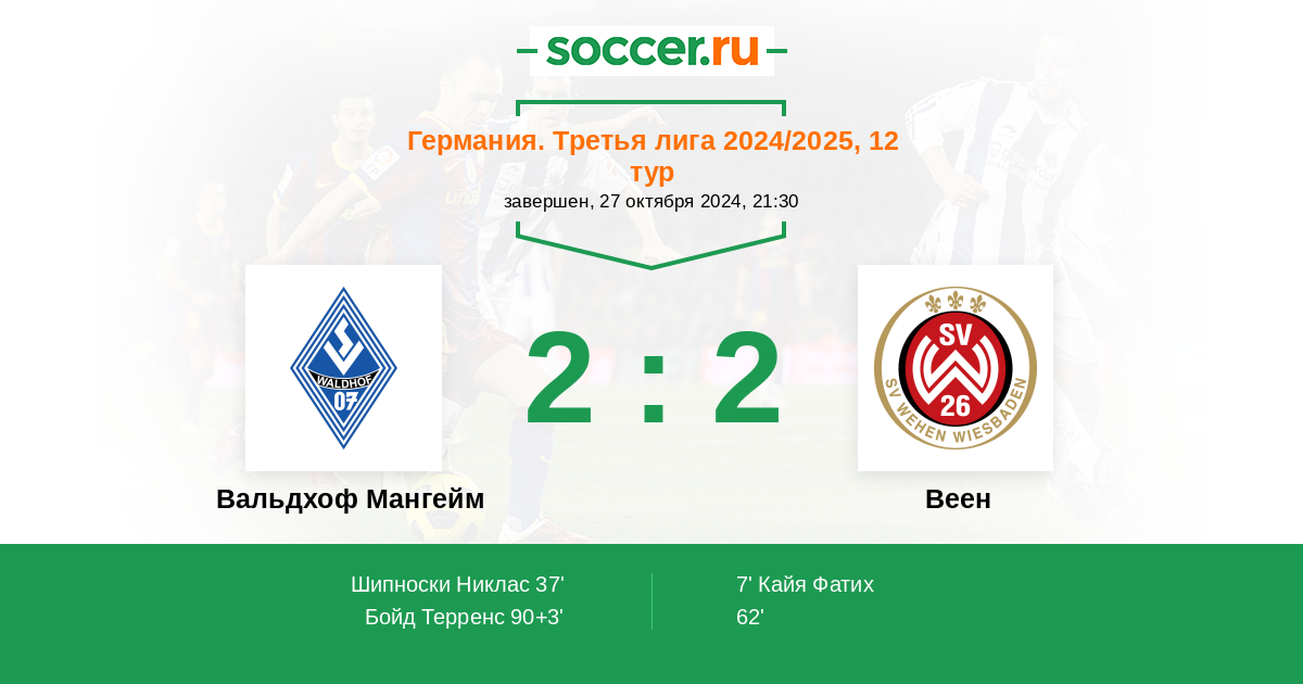 90+3' (2:2) Бойд Терренс (13) (Бенателли Рико (11))