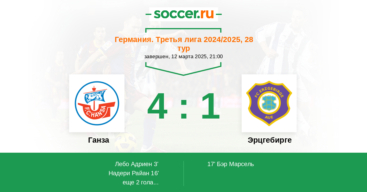 17' (2:1) Бэр Марсель (15) (Клаузен Мика (8))
