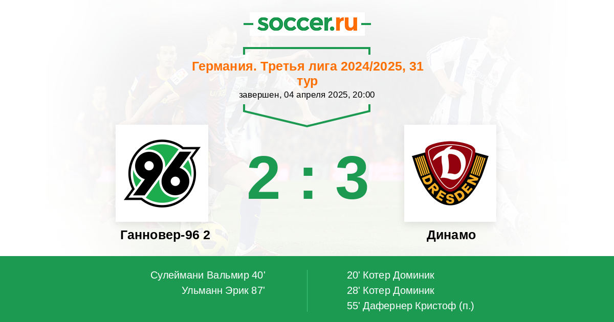 40' (1:2) Сулеймани Вальмир (23) (Калем Робин (24))