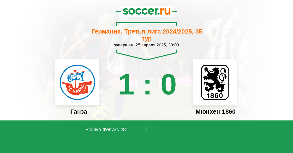 48' (1:0) Рюшке Феликс (29) (Детце Бенно (42))
