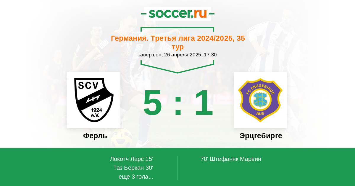 15' (1:0) Локотч Ларс (13) (Стечук Доминик (11))