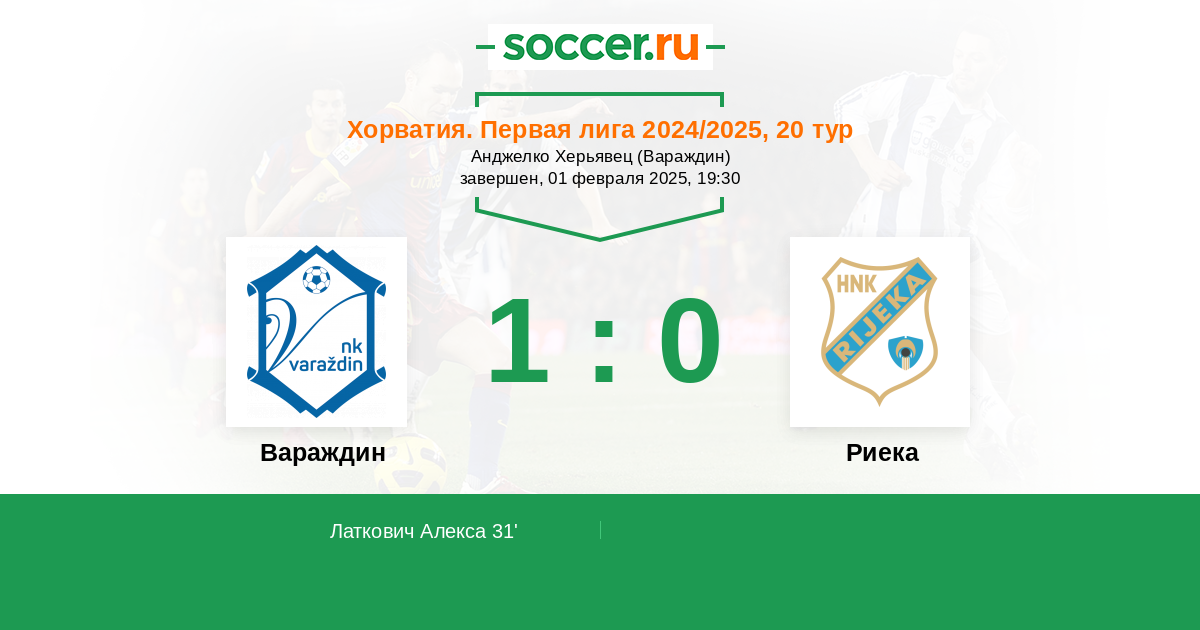 31' (1:0) Латкович Алекса (27) (Дабро Марко (9))