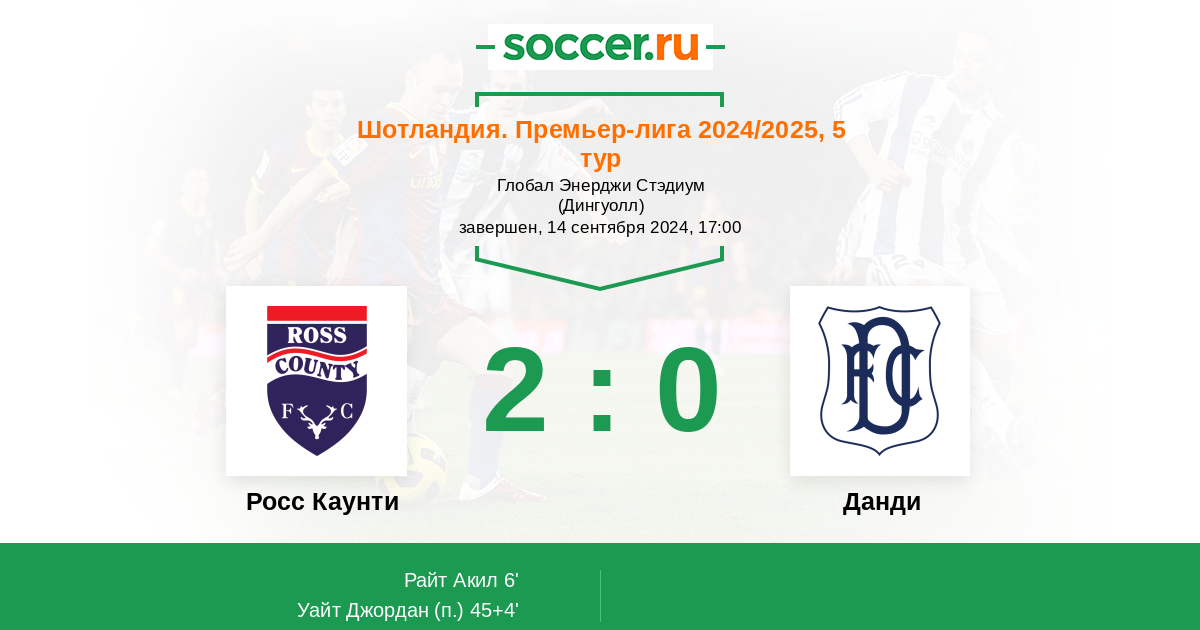 6' (1:0) Райт Акил (4) (Чилверс Ноа (10))