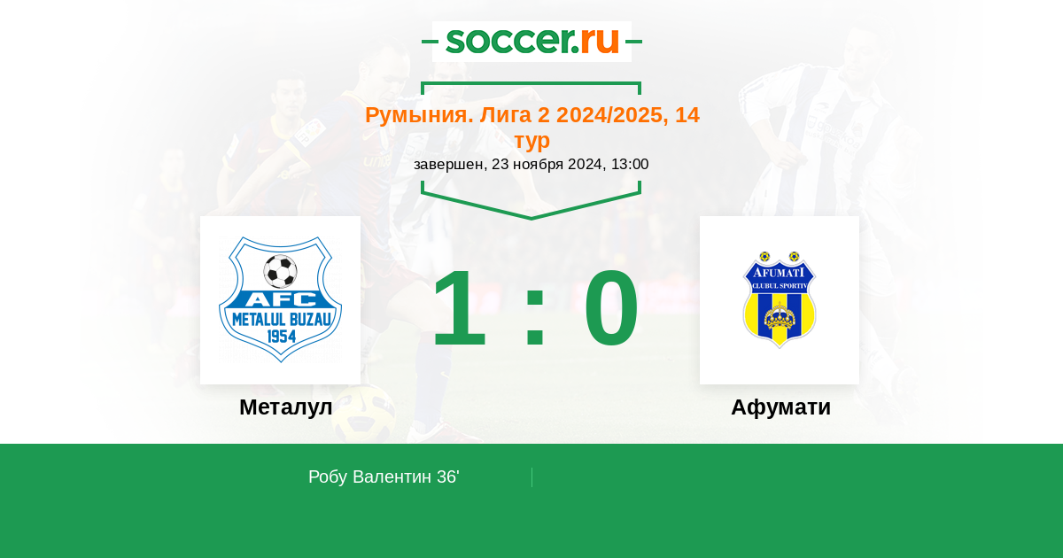 36' (1:0) Робу Валентин