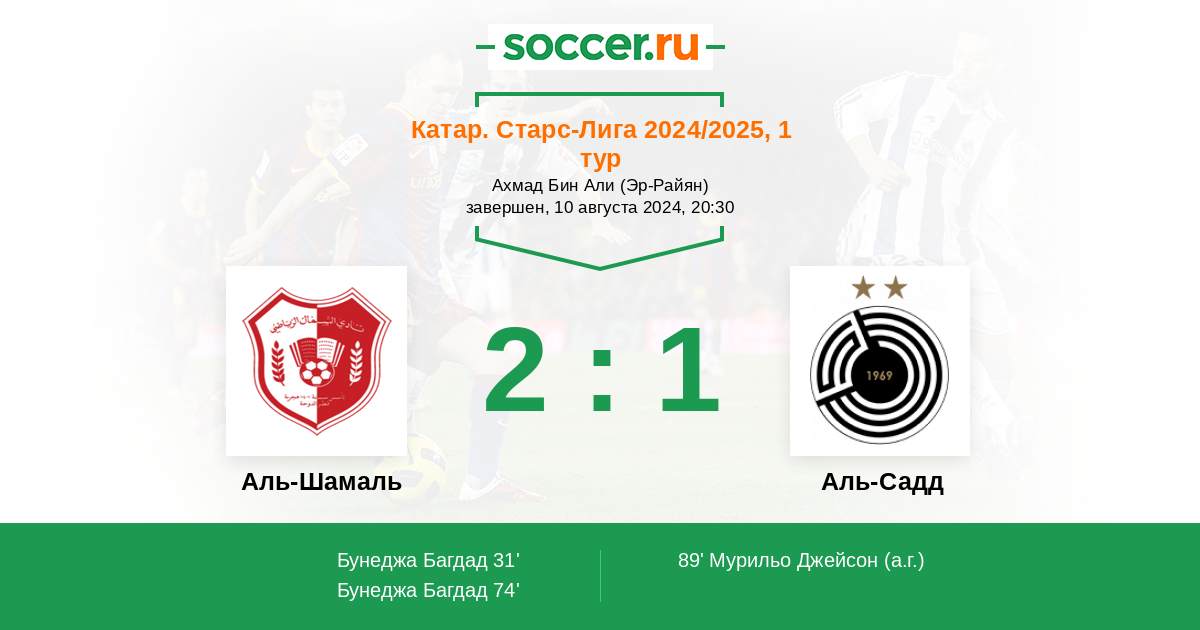 74' (2:0) Бунеджа Багдад (11) (Мурильо Джейсон (24))