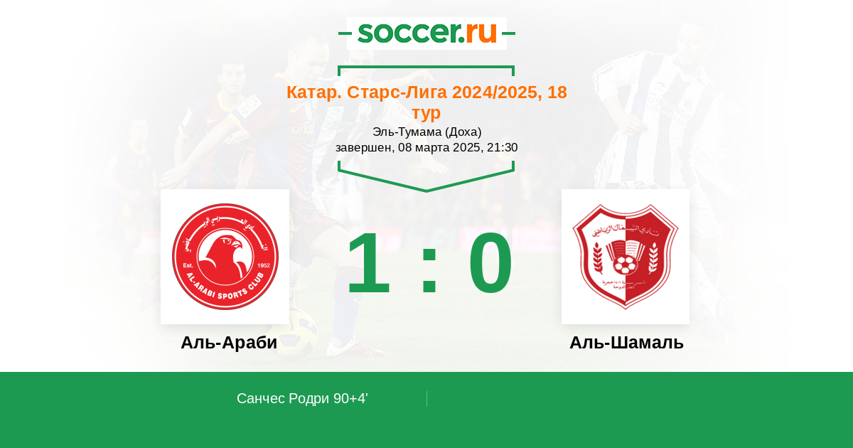 90+4' (1:0) Санчес Родри (10) (Альнаимат Язан (11))
