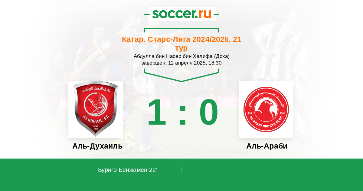 22' (1:0) Буриго Бенжамен (19) (Алмоез Али (11))