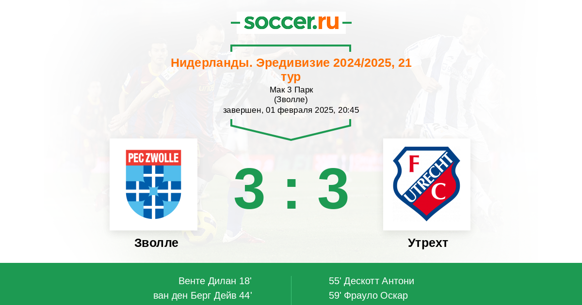 18' (1:0) Венте Дилан (9) (Монтейро Хамиро (35))