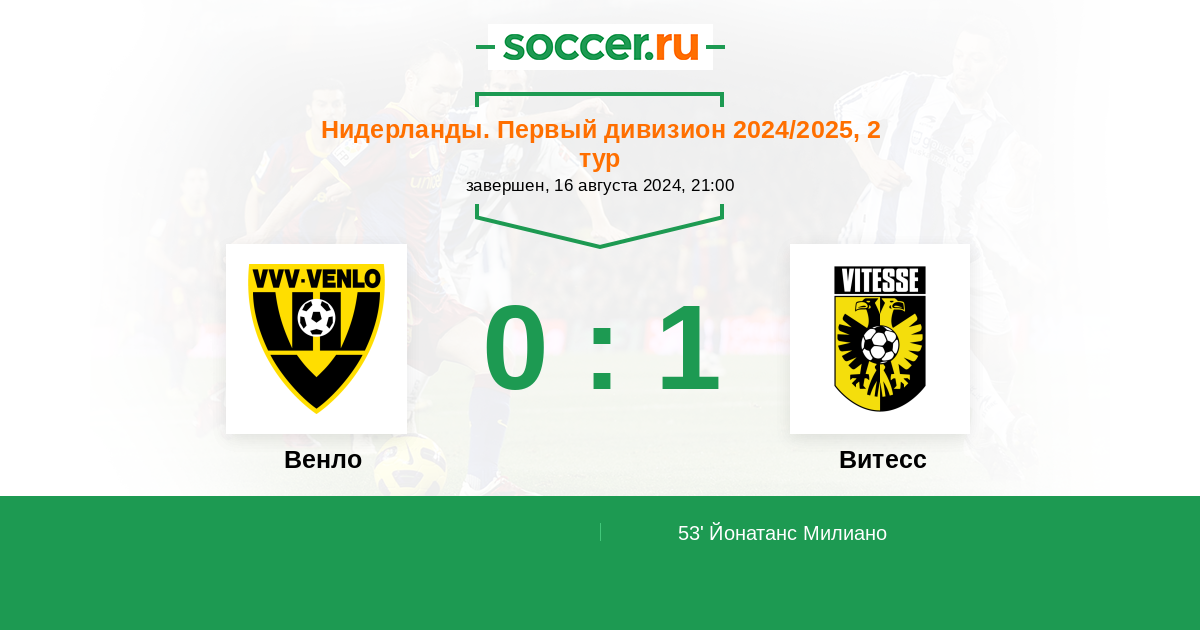 53' (0:1) Йонатанс Милиано (10) (де Регт Гиан (7))