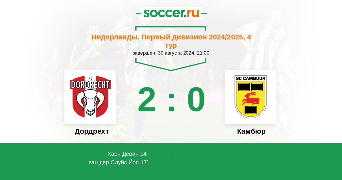 14' (1:0) Хаен Девин (9) (ван дер Слуйс Йоп (20))
