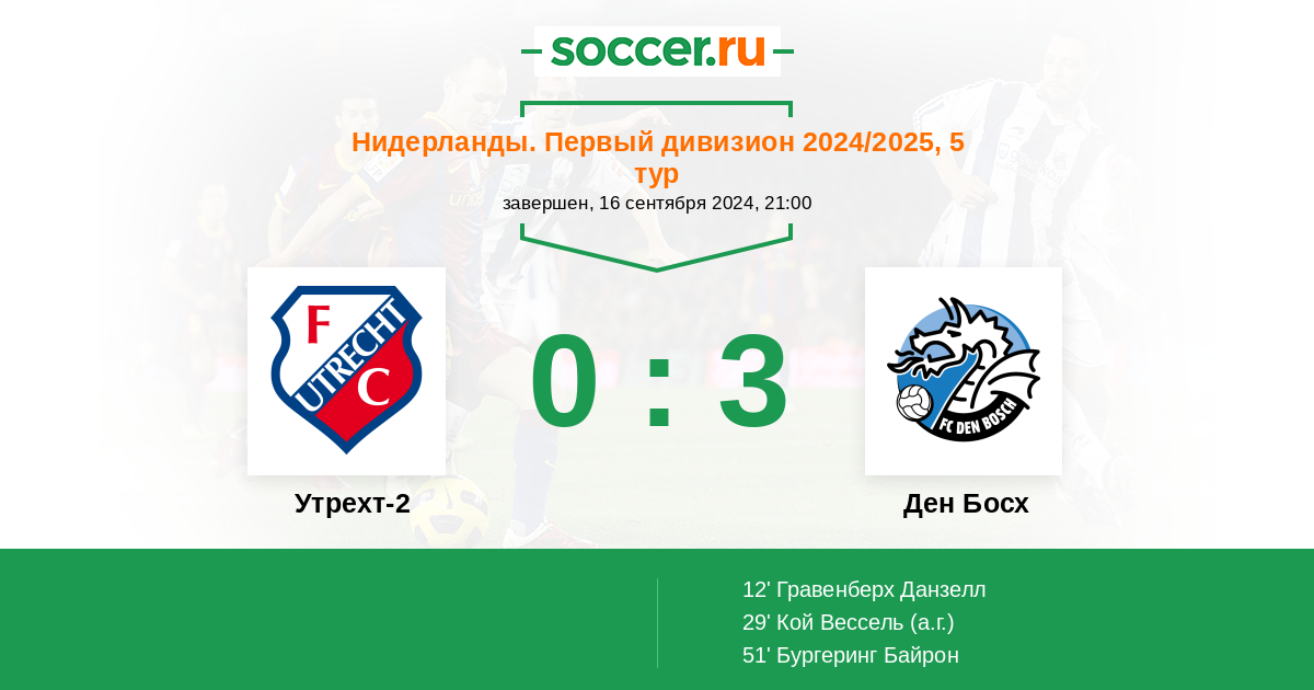 29' (0:2) Автогол Кой Вессель (3)