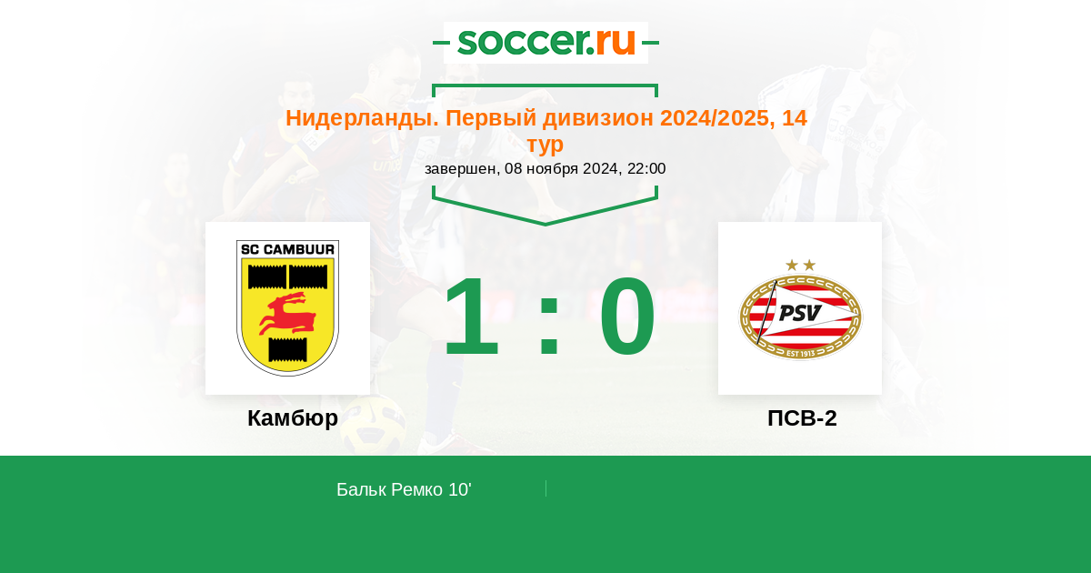 10' (1:0) Бальк Ремко (7) (Ван Мюллем Джереми (6))
