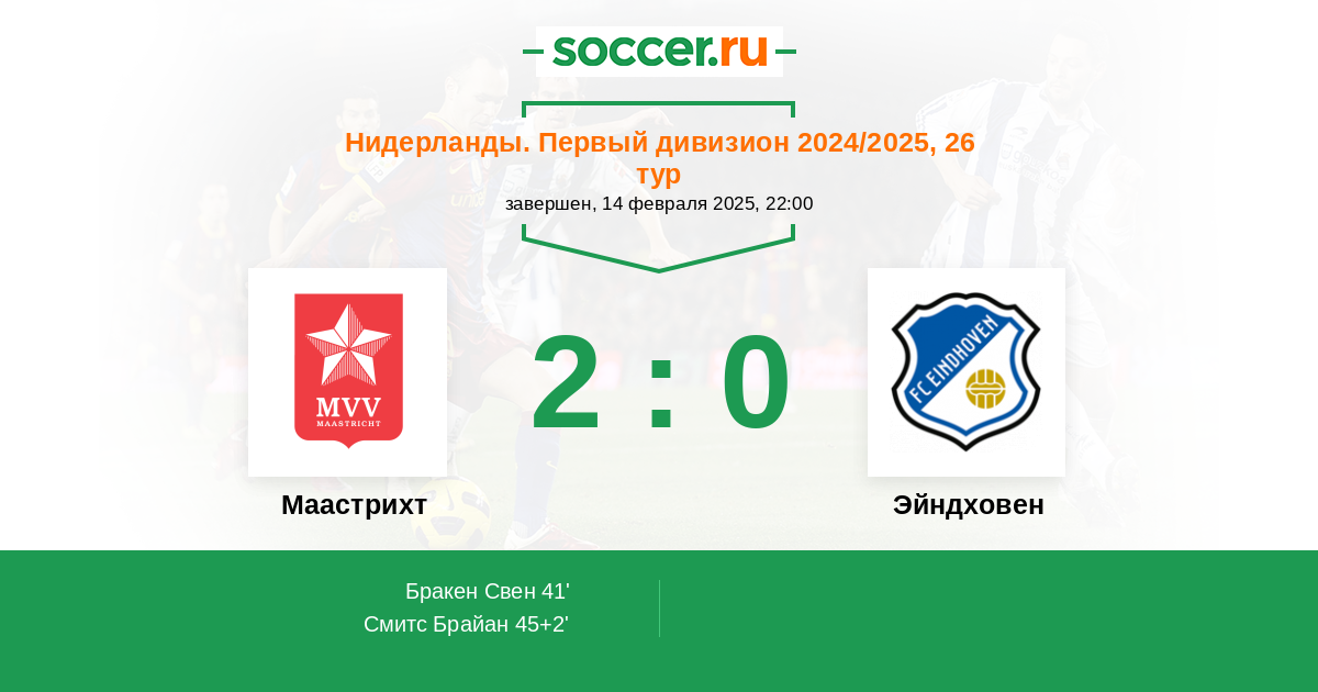 Запасные: 8 Симонс Джейвон (с 59'), 18 Лимури Фарук (с 68'), 34 Саймонс Тайрис (с 68'), 5 Свертс Мартен (с 81'), 4 Пейненбург Мартен (с 82'), 7 Блуммель Свен, 19 ван Эйндховен Рубен, 1 Боргманс Джорт, 20 Верхей Люк, 31 Мэндерс Джастин
