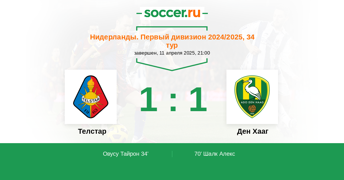 70' (1:1) Шалк Алекс (10) (ван дер Слоот Стивен (2))