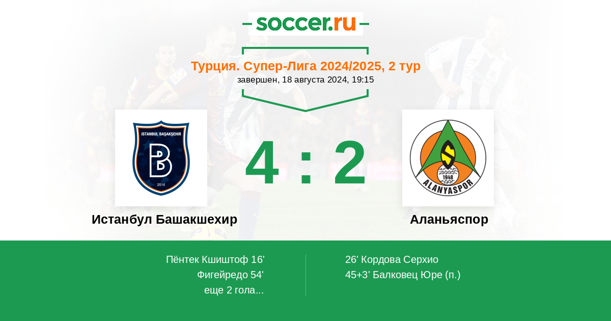 Запасные: 4 Байыр Фуркан (с 43'), 10 Дурсун Сердар (с 64'), 42 Макута Гай (с 64'), 11 Рони Лопеш (с 79'), 33 Зехир Исмаил, 20 Аксой Фатих, 21 Булут Булутан, 71 Юнал Вейсел, 50 Акдаг Умит, 99 Карагоз Юсуф