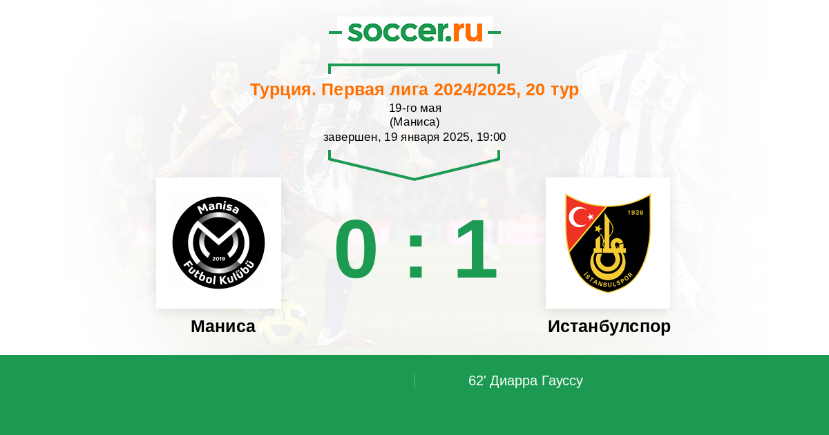 62' (0:1) Диарра Гауссу (19) (Сарикайя Муаммер (24))