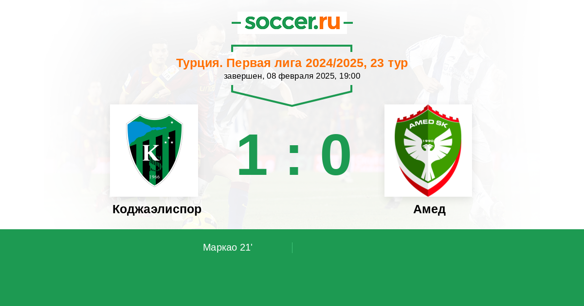 21' (1:0) Маркао (10) (Огуз Ахмет (22))
