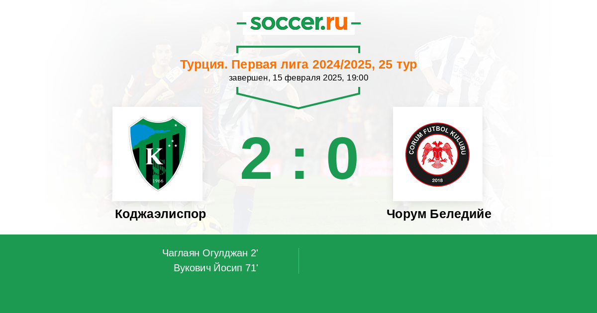 2' (1:0) Чаглаян Огулджан (17) (Маркао (10))