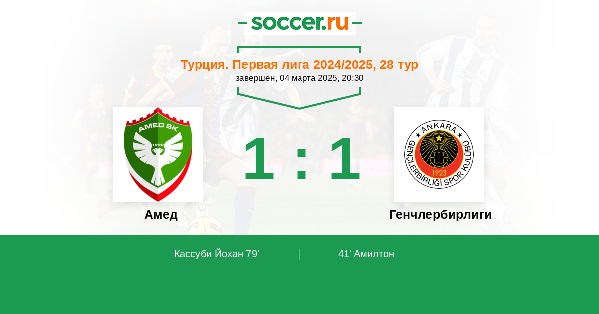 79' (1:1) Кассуби Йохан (6) (Орхан Чекдар (10))