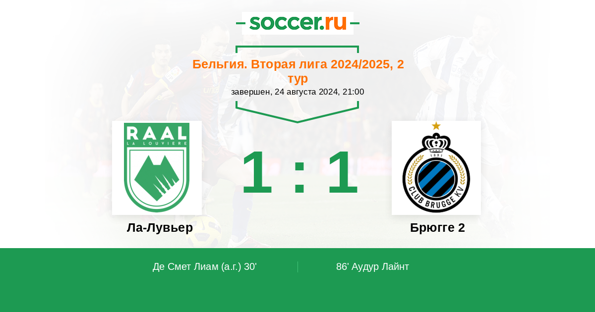 30' (1:0) Автогол Де Смет Лиам (80)