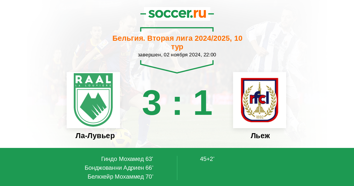 70' (3:1) Белкхейр Мохаммед (14) (Бонджованни Адриен (26))
