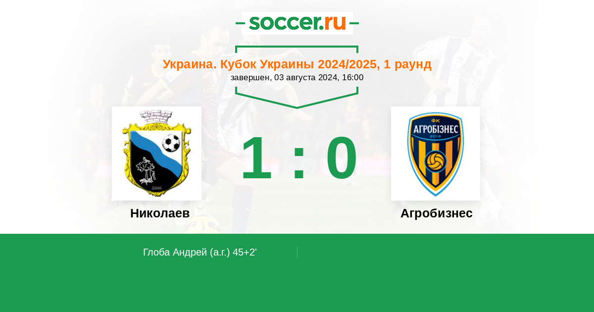 45+2' (1:0) Автогол Глоба Андрей