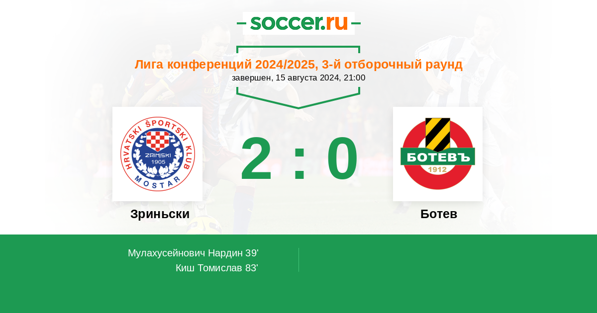 83' (2:0) Киш Томислав (10) (Чуже Марио (25))