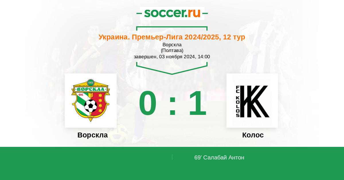 69' (0:1) Салабай Антон (30) (Боливар Джованни (11))