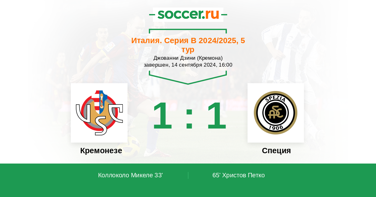 33' (1:0) Коллоколо Микеле (18) (Майер Жан (37))