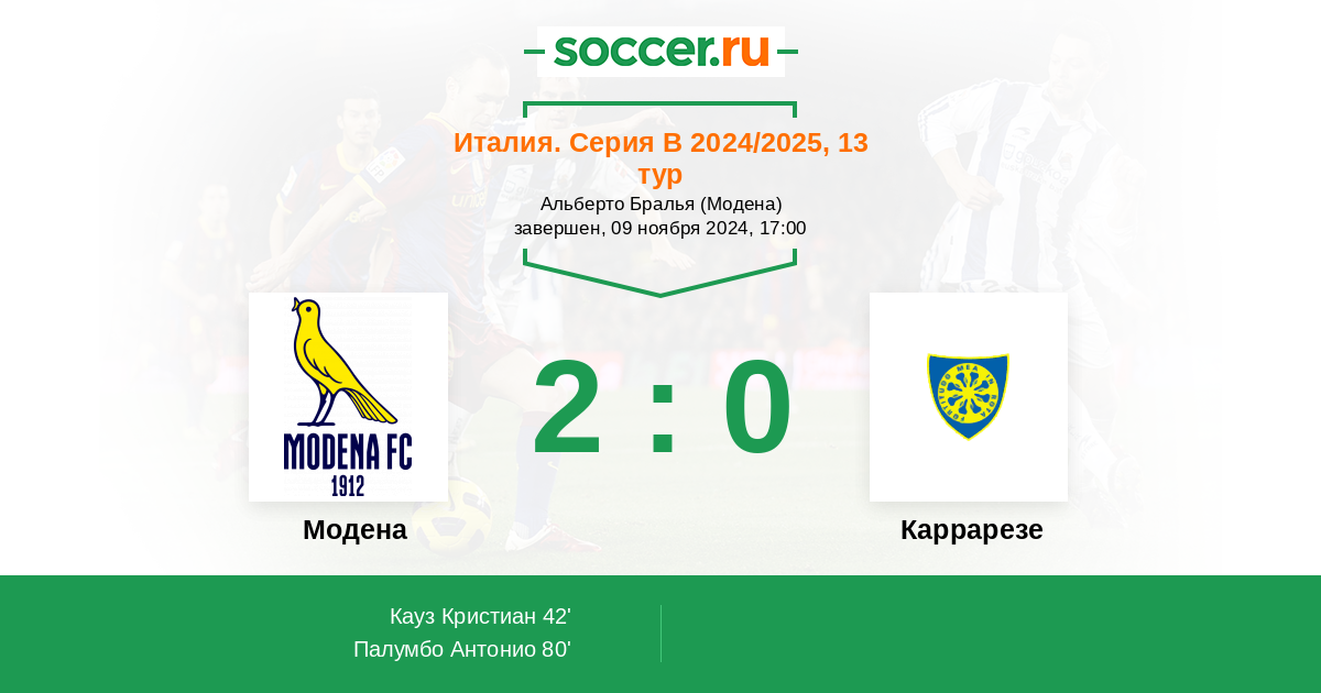 80' (2:0) Палумбо Антонио (10) (Касо Джузеппе (20))