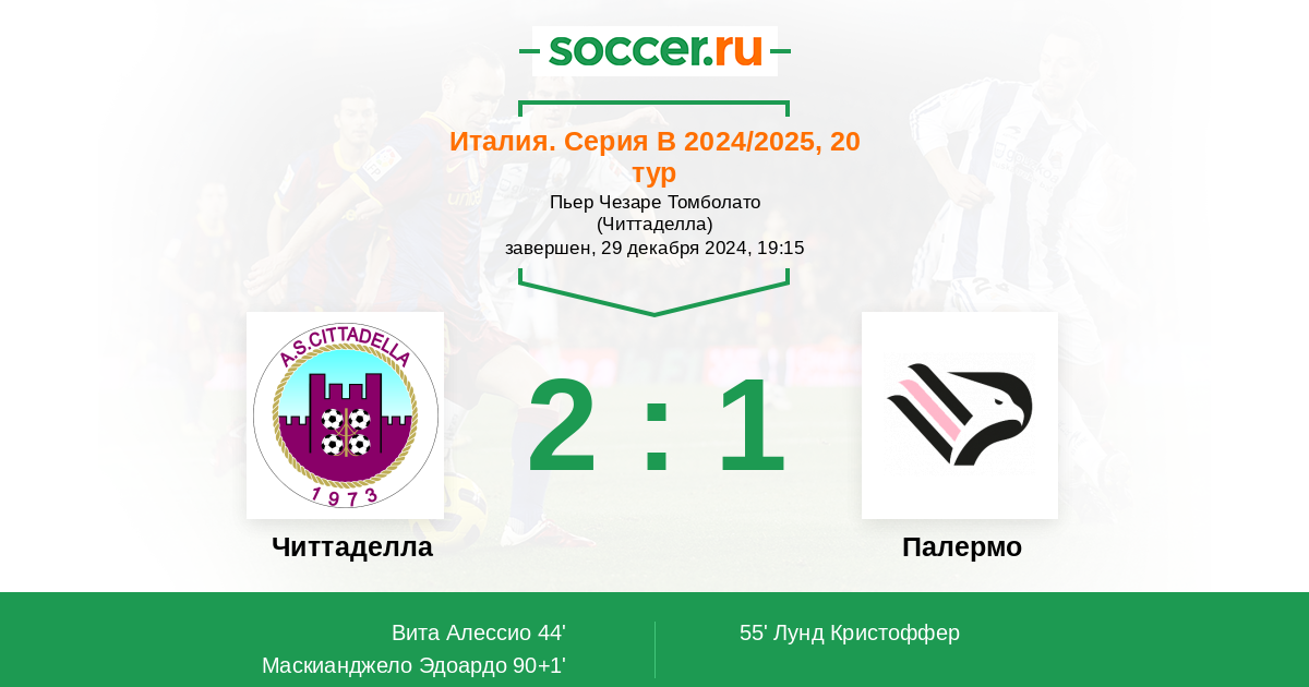 44' (1:0) Вита Алессио (16) (Д'Алессио Франческо (19))